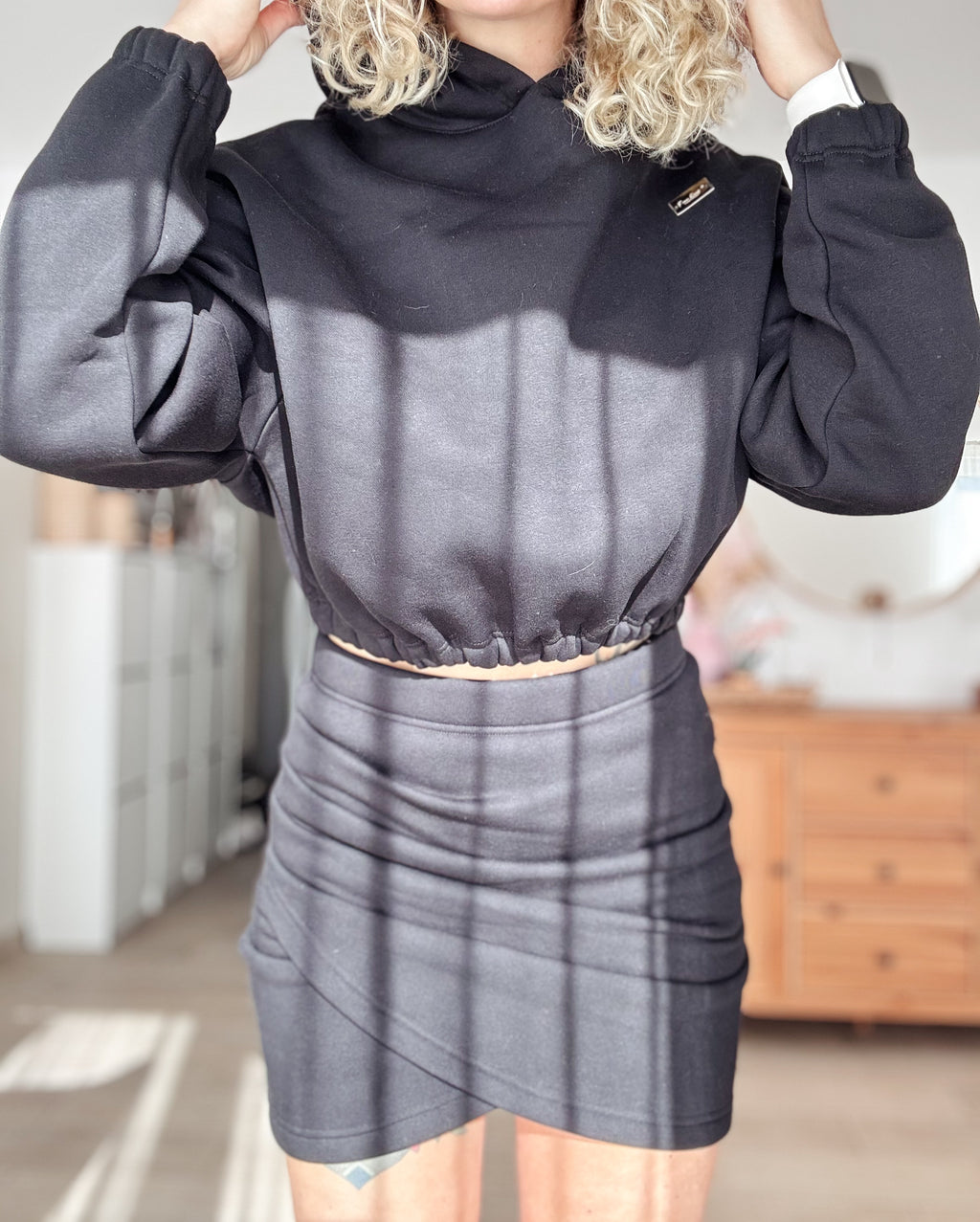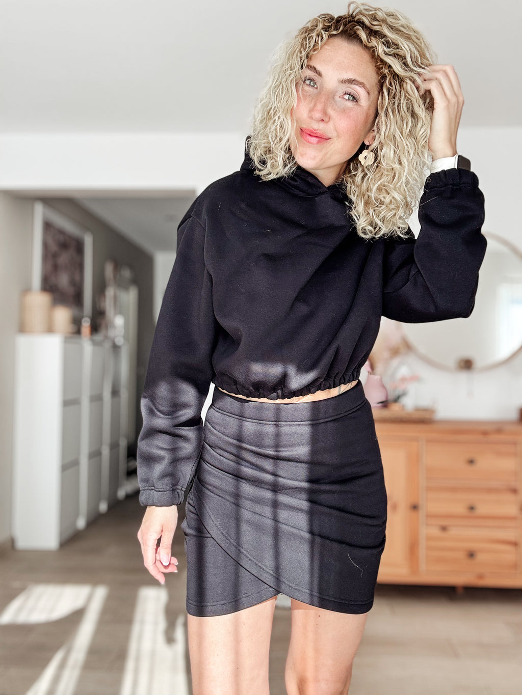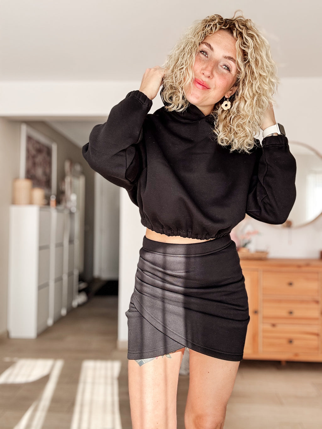 Wrapy ist ein wundervoller kurzer Rock mit raffinierten eingearbeiteten Raffungen im Stoff und auffallend stylischem Schnitt.